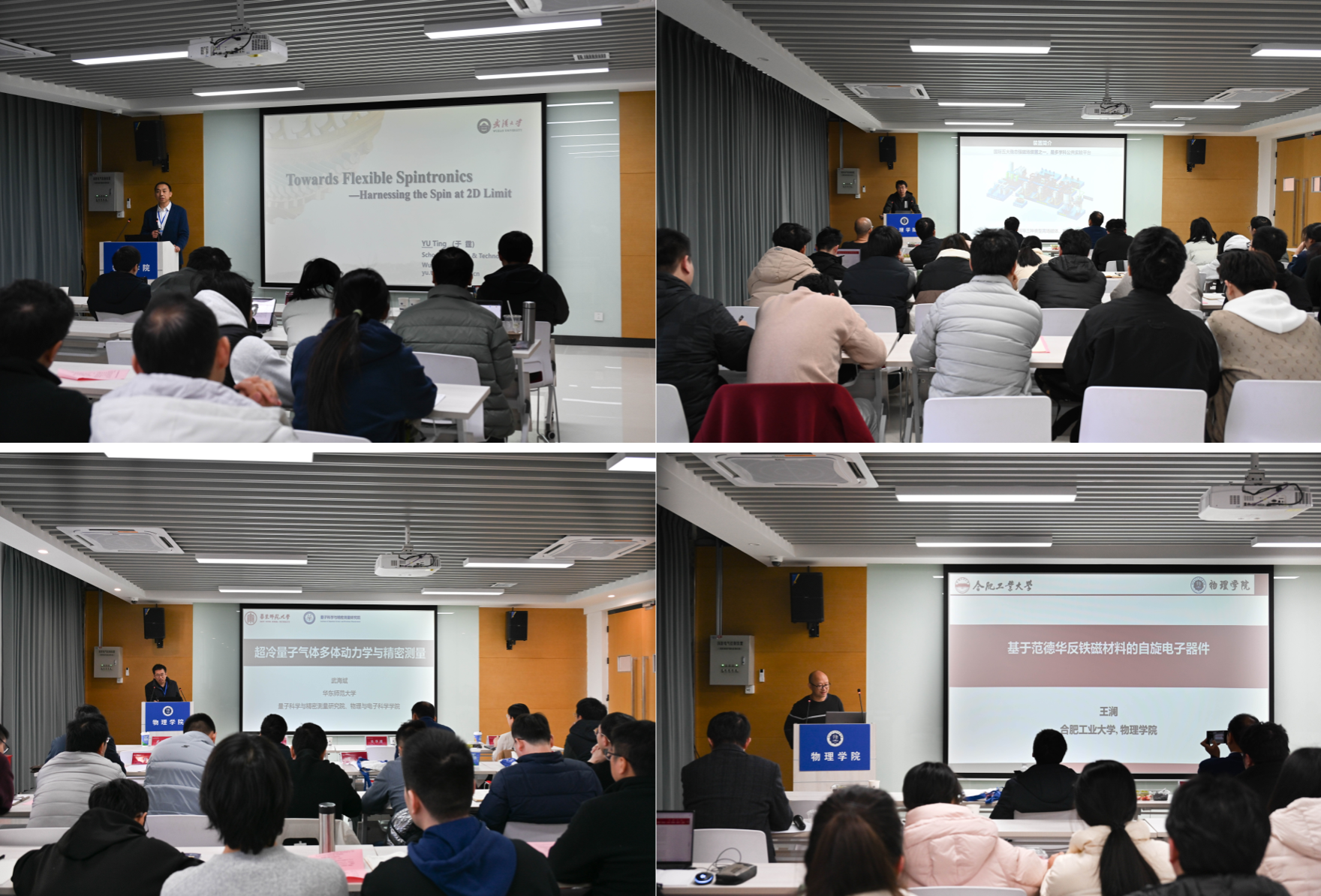 学术交流阶段,陈仙辉院士以“量子物质中的演生现象及展望”为题作开场报告,系统阐述了量子材料中的演生现象及其在信息、能源等领域的应用前景。紧接着,贾宝华院士分享了超快微纳加工技术的前沿进展与应用潜力。随后,华东师范大学武海斌教授、武汉大学于霆教授、复旦大学向红军教授、强磁场中心杜海峰教授及ok138cn太阳集团古天乐王澜教授先后分享了凝聚态、量子、理论物理等研究领域最新研究成果。各位专家的报告内容丰富多彩,见解独到,与现场师生频频互动,呈现了一场高水平的学术盛宴。