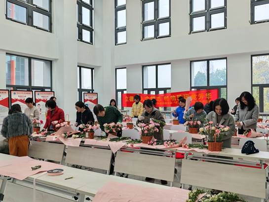 随后,女教职工们来到了三楼大厅开展插花活动。三月春暖,芳华绽放。三楼大厅内花香弥漫,一场别开生面的“三八”国际妇女节主题插花活动在此温馨举行。学院领导与女教师们齐聚一堂,共赴一场与春天的“花”样约会。