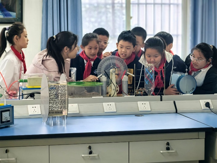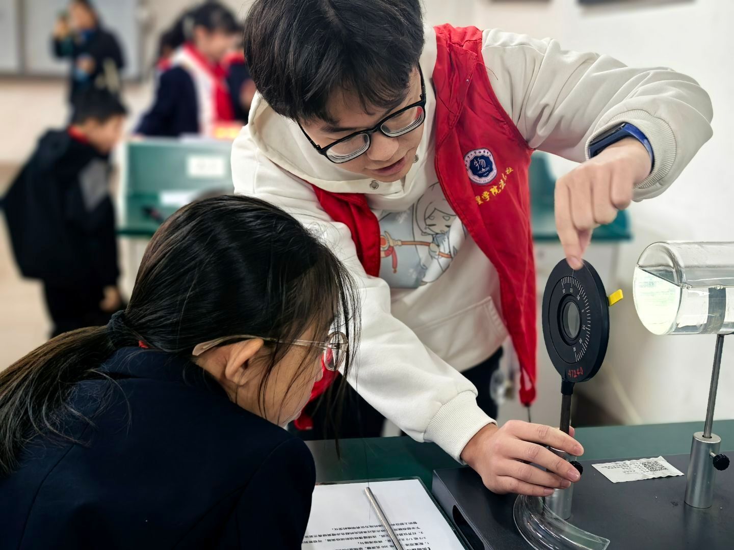 志愿者们细致讲解实验原理,让小朋友在操作过程中感受物理的“声、光、热、力、电”。此次活动邀请小朋友进入大学实验室,在实践探索中学习物理知识,有助于激发他们对科学的兴趣,同时也在他们心中种下了科技兴国的种子。