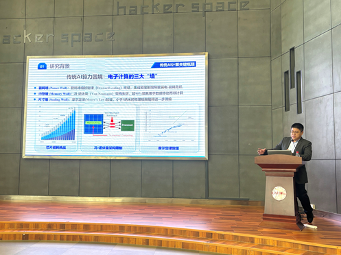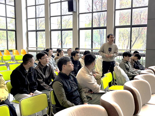 报告中,张晗教授以传统AI计算中的关键瓶颈和AI光计算中的关键挑战为切入点,深刻阐述了神经网络作为其中关键技术路径,在驱动数据智能化和信息变革中的核心作用。在介绍其团队的智能光计算研究时,张晗教授重点展示了在荧光神经网络、联结学习全荧光神经网络、应力发光神经网络、可重构逻辑门光神经网络、感存算一体全光纤神经网络等前沿方向取得的系列创新成果。最后,他对光学大模型的未来发展及应用前景进行了前瞻性的总结与展望。整场报告内容翔实、观点前瞻,以其深刻的学术见解赢得了在场师生的广泛赞誉。报告结束后,参会师生围绕技术细节、潜在应用等话题,与张晗教授开展了深入而热烈的讨论,现场学术氛围浓厚。