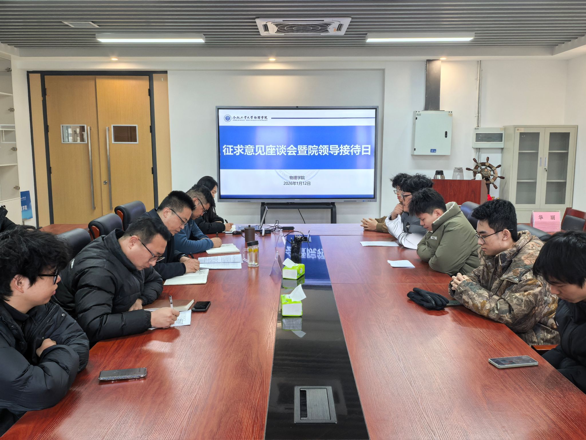 1月12日上午,ok138cn太阳集团古天乐于物理楼501会议室组织召开学生意见征集座谈会暨院领导接待日,本研各年级学生代表21名同学参加。
