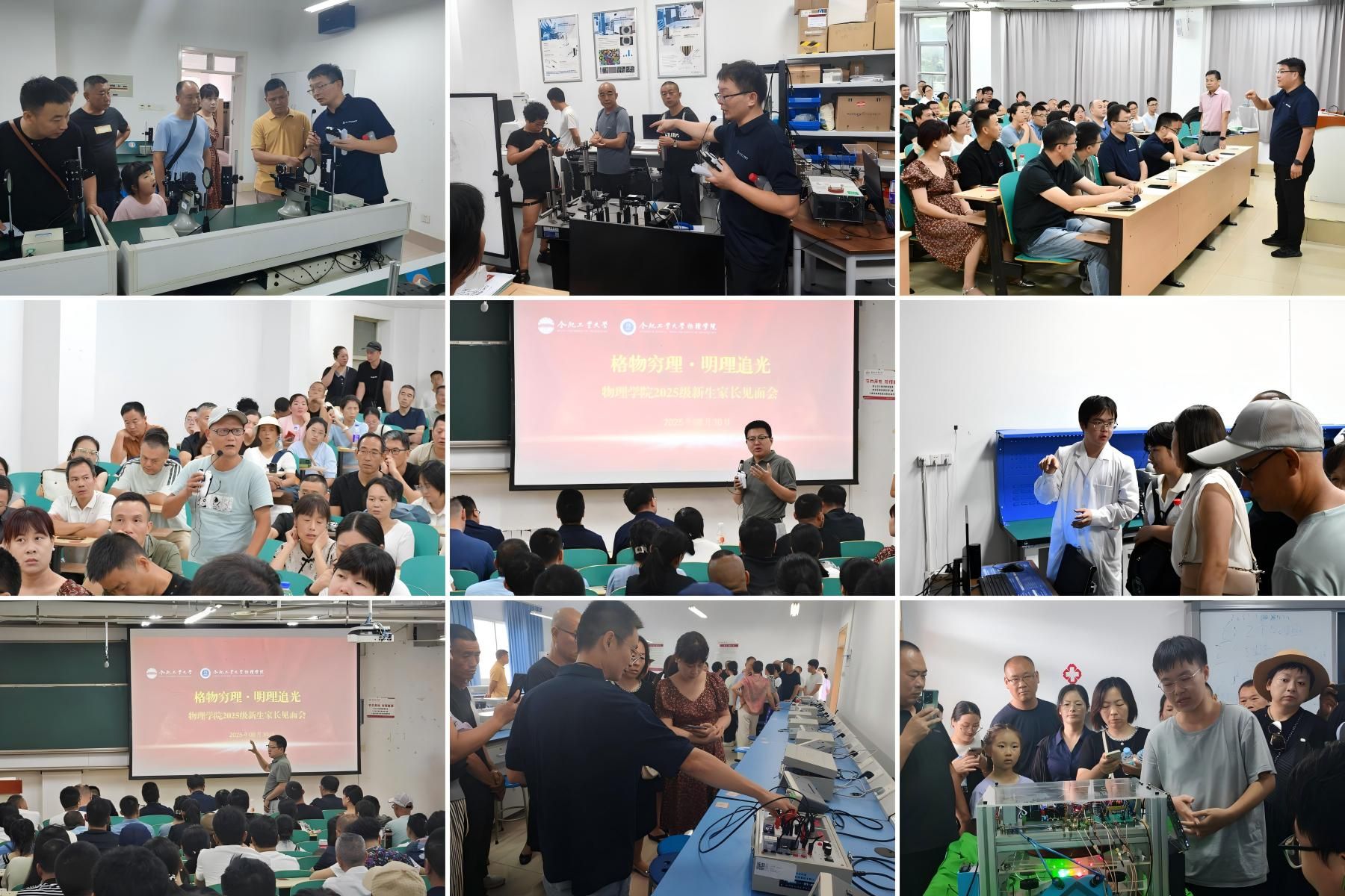 会后,在各班班主任的带领下,家长们先后参观了新物理实验楼,量子精密测量实验室、光电子智能器件与系统实验室、微纳光子学与光场调控实验室等科研实验室,了解学院软硬件概况。